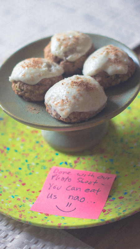They are also good refrigerated.  I haven’t tried reheating them at a later time, and I don’t think I would want to if they’re frosted. If you do decide to, I would only microwave them for maybe 8 seconds.  You may want to try and experiment yourself and learn the hard way by sacrificing a cookie or two 😉